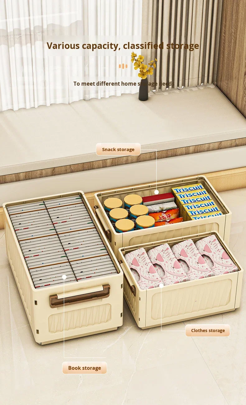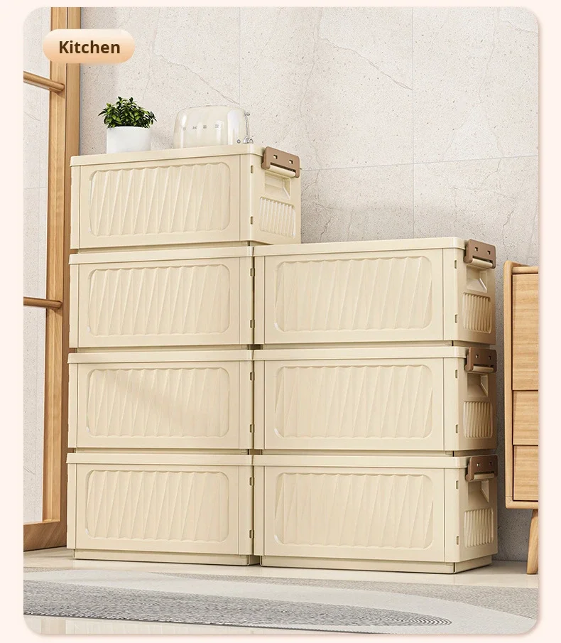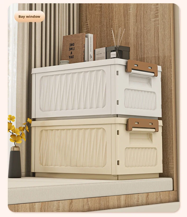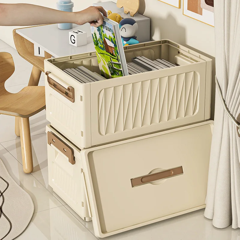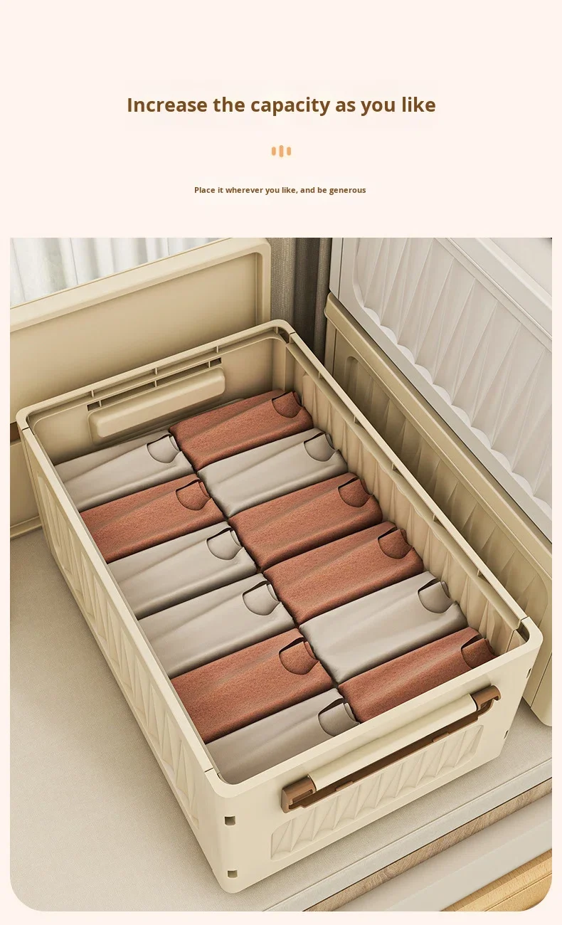 Folding Eco-Friendly Plastic Storage Box Rectangle Home Wardrobe Clothing Organizer 50L-60L Capacity Modern Minimalist Design